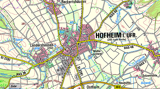• Kartenausschnitt aus der DOK von Hofheim in Unterfranken